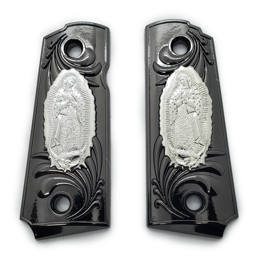 1911 Metal grips Black Nickel Virgin Mary Lady of Guadalupe Ambi Safety #T-M104