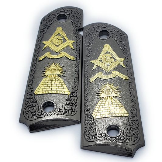 1911 FULL SIZE GRIPS Masonic Black Nickel W AMBI CUT