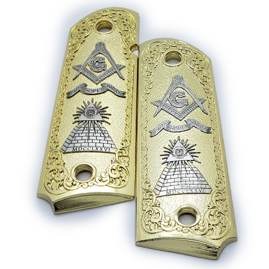 1911 FULL SIZE GRIPS Masonic Nickel Gold W AMBI CUT