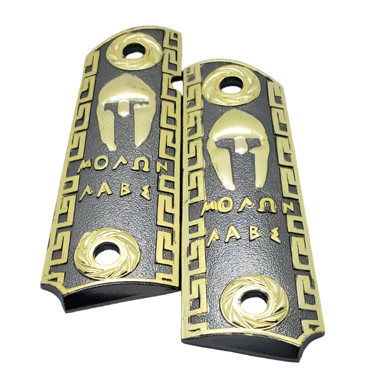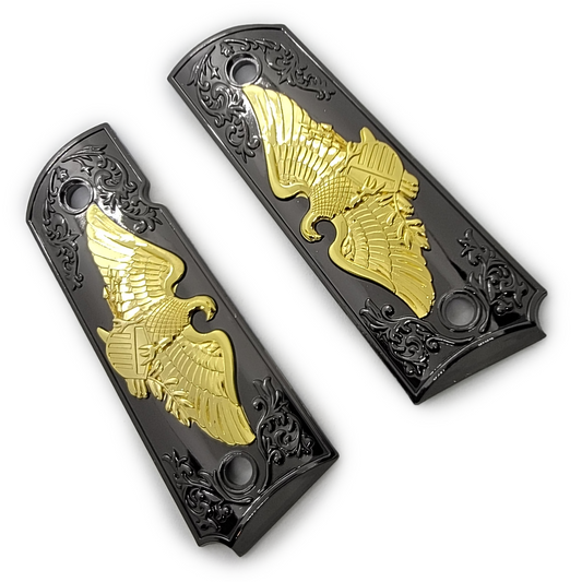 1911 COLT FULL SIZE GRIPS Spartan Black Gold & Nickel W AMBI CUT