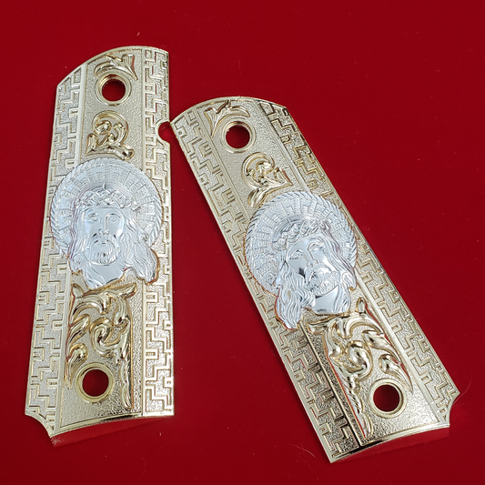 1911 Jesus Head FULL SIZE GRIPS Gold W AMBI CUT#T-T782