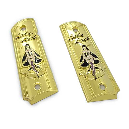1911 FULL SIZE METAL GRIPS With AMBI CUT Gold/Nickel J-1911-14