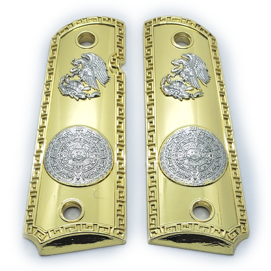 1911 FULL SIZE Aztec Calendar Grips Gold Plated Ambi Cut #F-B11