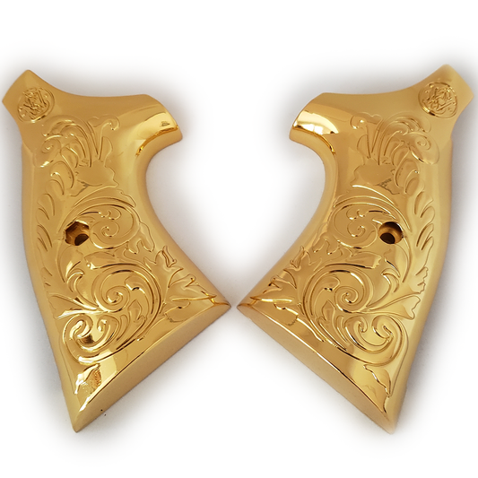 Custom Smith & Wesson Scroll Metal Grips - K-Frame Square Butt Gold